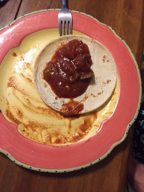 And so, Morocco met Mexico – the stew was perfect filling for the fresh corn tortillas. My husband even introduced Mexico to France –tortilla filled with ratatouille. Good thing we liked it, we have tons of leftovers of all!