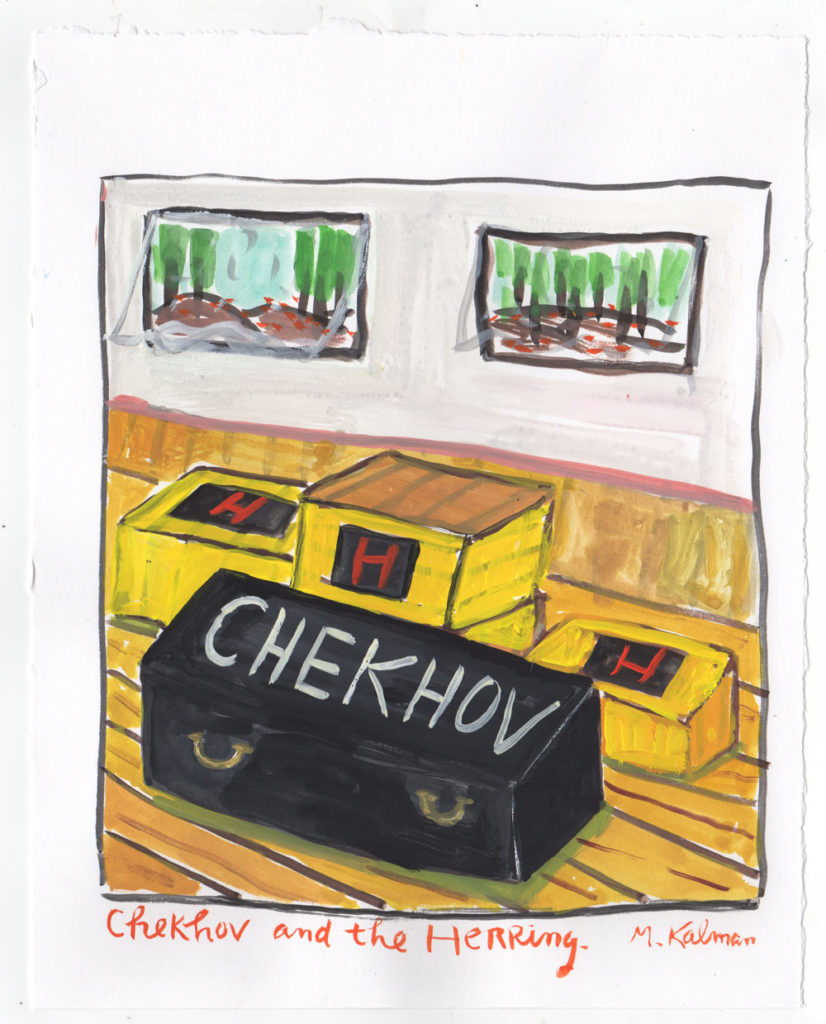 As Kalman writes: “When Chekhov died, his body was sent to the funeral in a refrigerated train car full of herring. They accompanied the great writer to his end. The fish were innocently sitting in their boxes next to the big box of Chekhov. That is enough to make you like them. And now I actually do.”