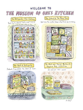 Roz Chast is another artist/cartoonist whose work I’ve admired for many, many years.  It has graced the pages of the New Yorker for as long as I can remember.  I’ve made use of her insightful cartoons to emphasize points while teaching museum studies, or just to lighten the class and make the students think.  For example, the muses of Ancient Greece (poetry, tragedy, comedy, hymns, dance, astronomy, and history) are the source of the word by which we call these temples of heritage found worldwide – museums.  Chast imagined three early 21st century muses which have entered our lives. Does one of them influence you?