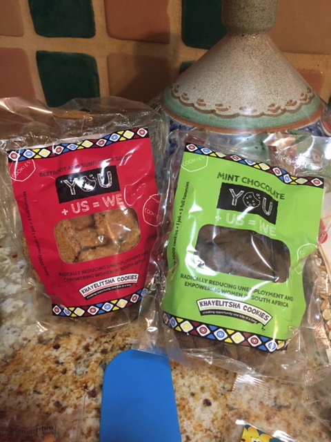 Khayelitsha Cookies (https://kcco.co.za/) is a South African baking company which employs previously unemployed ladies. They are trained to bake and pack their delicious cookies. Of course, I returned to my miracle diet last week, so I did not sample, but I brought 2 bags home for my husband to enjoy.