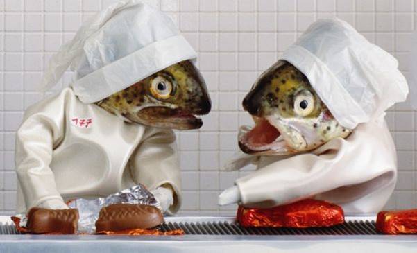 Fish symbolizes many things. “That we be fruitful and multiply like fish.” It represents the Great Leviathan on which Israel is to feast for eternity in Heaven, and the saying in the Shulhan Arukh “being at the head and not the tail.” And because fish never close their eyes, they represent that God is ever watching. There is a Hasidic custom not to eat fish on the second day of Rosh HaShanah because fish eat the sins thrown into the water during the Tashlikh ceremony.