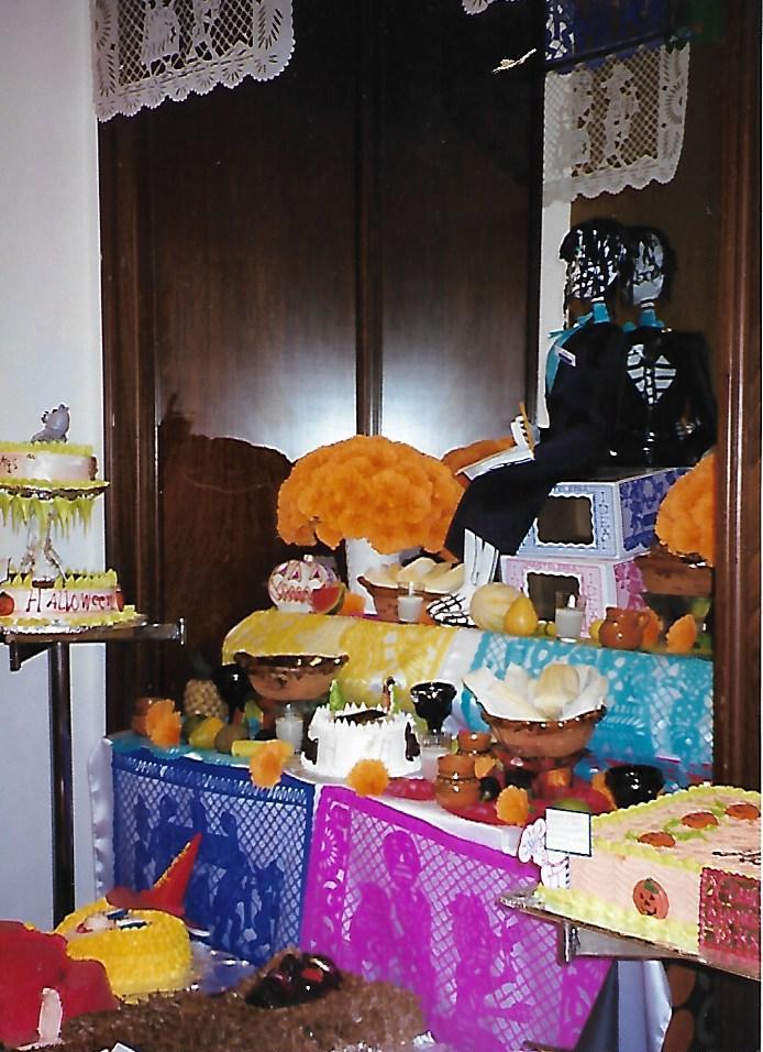 I did not mention in Part I last week, that way back in 1980 I discovered an amazing bakery in Mexico City – Pasteleria Ideal (https://www.pasteleriaideal.com.mx/sobre-nosotros?lang=en). It was all decked out for Day of the Dead. Breads and cookies and sugar skulls filled its entry. Don’t ask how, but after almost 20 years, I guided some friends straight there! Again, it was a showroom filled with ghoulish delights. My friends ventured upstairs where the most astounding cakes were on display. They were in bakery heaven!