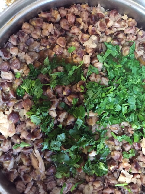 1 – cook hominy in about 4 cups of water for 2 hours, to prepare