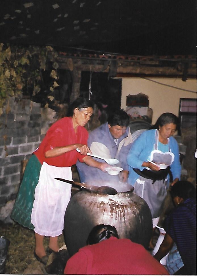One of my favorite Mexican foods is posole/pozole, an amazing traditional stew made with meat vegetables and hominy – big kernels of puffy and chewy corn. In two homes, this tasty, sometimes piquant dish was being prepared over an open fired in the traditional clay olla (cooking pot). I had a dilemma; posole is usually made with chunks of pork. I don’t eat pork. But I had to taste the real homemade dish. I was able to do so by avoiding the pork. Unbelievably good.