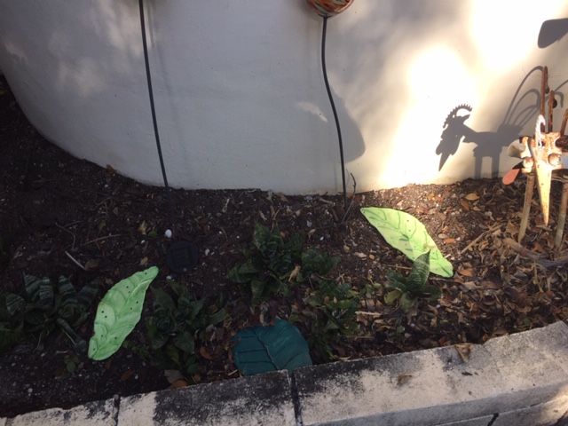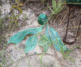 While on the Gulf Coast a few years ago with Constant Companion, I had seen these really cool large ceramic leaves and structures embedded in a beachside garden. I fell in love. I filed the photos I took of them at the back of my to-do list, hoping for the opportunity to try to make my own. The day finally came for me to try my hand with making them.