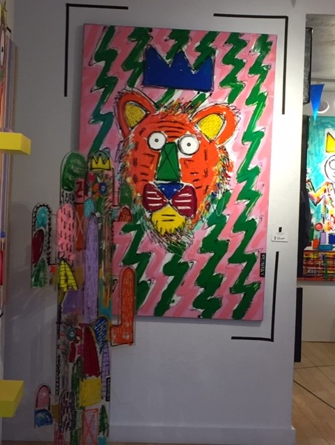 This tiger is just so playful. I love it. From Gallery Quinze, PAU, French artist – David Ferreira. Many years ago, a friend gave me a folk painting of a tiger. He coordinates well with my Mexican tiger mask. My tiger hung in my museum office because Constant Companion was not enamored with him. He’d love the company of this one, I’m sure.