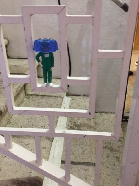 Once we got through the waiting line (perhaps the fire martial is looking at capacity these days, the day was sunny but not scorching hot), we entered a wonderland of art. The interior courtyard was filled with playful sculptures. Even the catwalk railings of this Miami Modern (Mimo) era hotel were populated with cheerful colorful little people.
