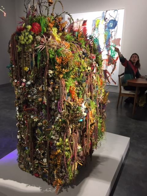 Art fairs are feasts for the senses. Sight, of course. Sound, of masses of people and maybe installations. Touch, you know – don’t touch the art. Smell, after a long day you can smell the vendors. Taste, either during a break or afterward, or maybe an artist has worked something you can eat into their artwork! What you see can be what you are looking for or what catches your eye. I like the latter approach and go with what attracts me. I often miss the must-sees, and yet, I enjoy what I see.