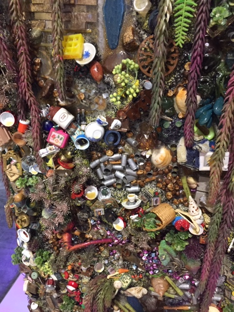 At the fair, I see it transformed into fine art! What fun. And think of what you can do with jingle bells (you can buy them at Michael’s though I imagine the artists bought them in bulk) if you put your mind to it. The first piece is constructed using ghungroos – these are not New Orleans throw beads, but small metallic bells used to make musical anklets. What else is new under the sun?