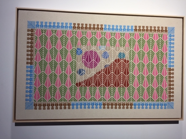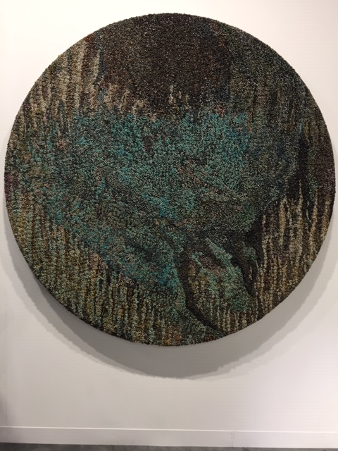 Artists I’ve never heard of, but their work visually attracted me. Some reflect my interest/commitment to cultural diversity. If some of the gallerists had seen that I was interested, I might have learned something about the artists of their work. The Nassar embroidered piece is a collaboration of the artist and Palestinian women: