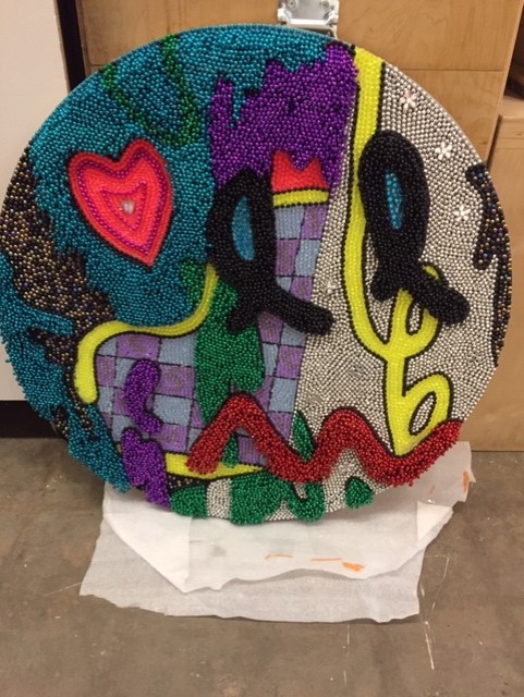 A while ago, I created two collages using a bevvy of New Orleans bead throws (see June 10 post). Sometime later, somewhere, I saw another interpretive, multilayered use of these colorful beads.