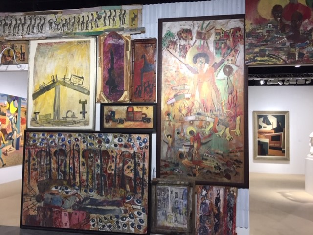 I was surprised to see a number of galleries were showing folk art, art by untrained artists. Two Kabinetts, or small dedicated displays, included this genre. Miami’s own prolific painter, Purvis Young was featured by the Hirschel & Adler gallery. A Rio gallery spotlighted the work of Amadeo Luciano Lorenzato, a painter from Belo Horizonte. One small painting by Bill Traylor was shown, as well as another artist whose name, regrettably I did not capture.