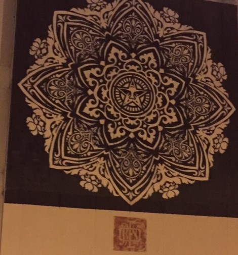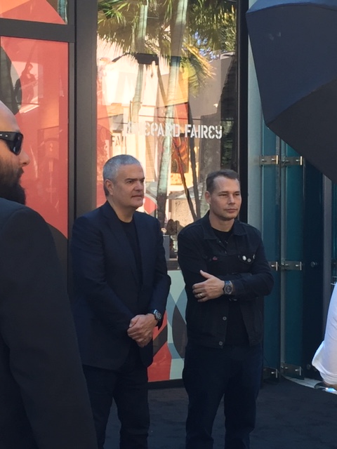 And, there are always the famous people sightings during Art Week. Here’s ours for the week – Shepard Fairey, and new mural mural on the D-Squared Building at the edge of the District. Some years ago, Fairey donated a mural to the Design and Architecture Magnet School (DASH), located in the Design District.