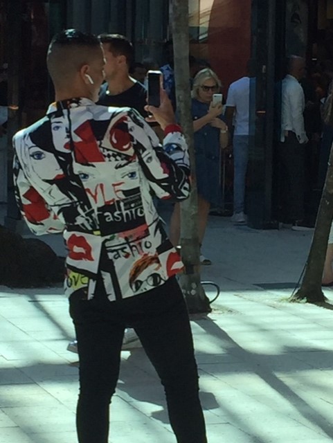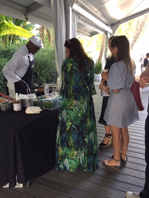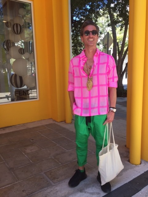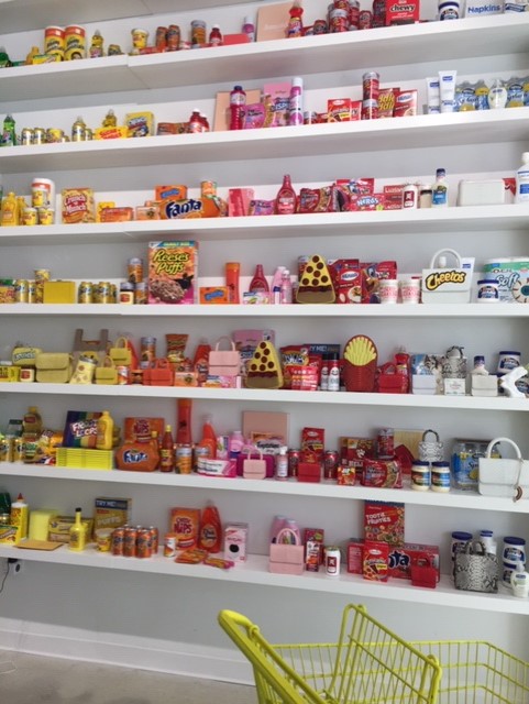 The Design District is a series of plaza lined with high-end stores, connected by walk-ways or paseos. Yes, the whole shebang borders on pretentious. Our first destination was Paradise Plaza where pop-up stores are installed. Last year along with a Gweneth Paltrow goop store there was an amazing photo exhibit hidden on an upper level. This year we were drawn into the Galereh Mizrahi pop-up by the playful, brightly colored display. Being promoted was their line of bodega bags … thus the bodega-like presentation.