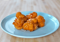 Note: Dough fritters are made by many people around the world, not only Jews. There is a version recorded by a Roman from around 160 BCE! Have you eaten funnel cakes at the county fair and other variants at ethnic street fairs?
