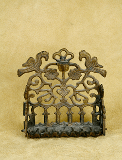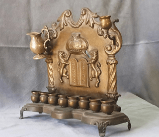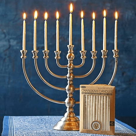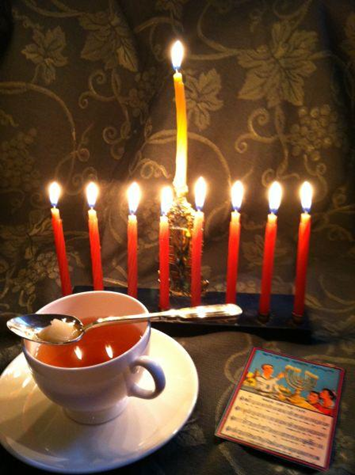 Second is the legend, the so-called miracle of the oil. Following the recovery and rededication of the Temple in Jerusalem according to the Talmud one day’s worth of oil lasted for eight days . A nine-branched hanukiah or menorah is the central focus of the celebration. Traditionally, it is displayed in a window or at the entrance of the home opposite the mezuzah so that the lights should be seen by all. Because of the miracle, Hanukah is known as the Festival of Lights.