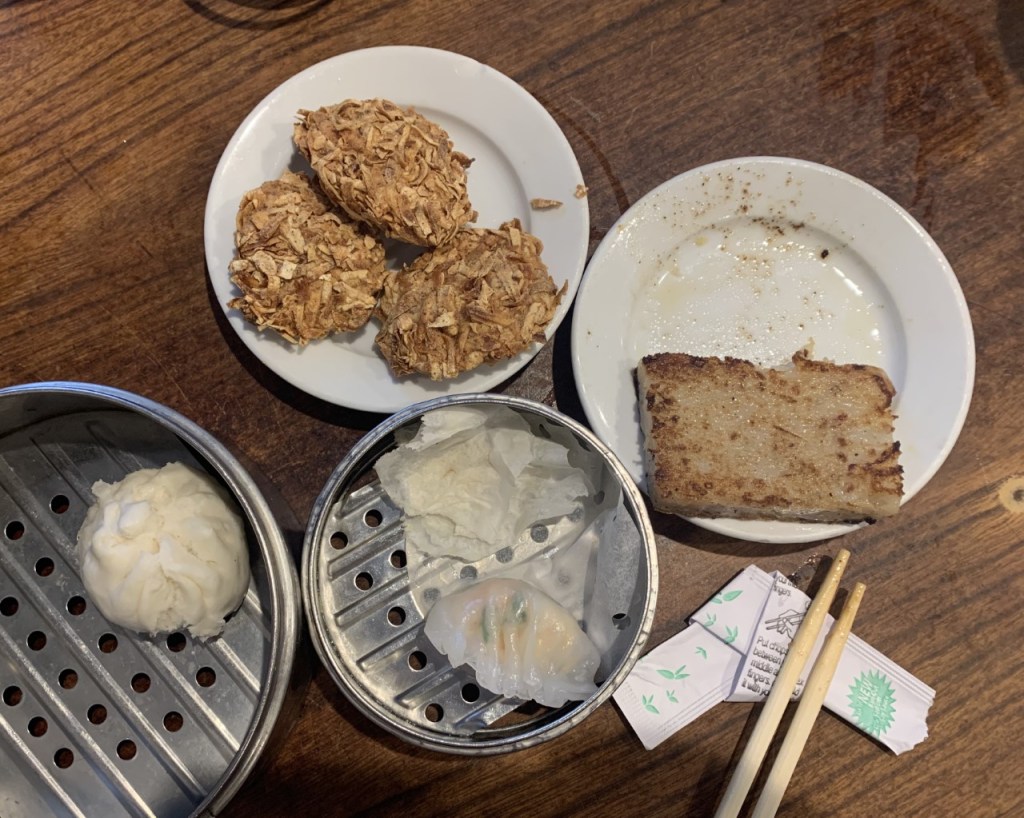 Constant Companion timed the drive to enable us to get across town in time for opening and get a table. Did we ever get one – we were number one! It was written on our order form! And the waitress reminded us of this fact as she brought out our freshly made dim sum. This restaurant makes these treats and everything else they serve to order, no cart wheeled through the closely fit tables.