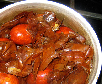 * I boil my eggs with onion skins in the water; other cooks bake them in the oven to get the brown color.
