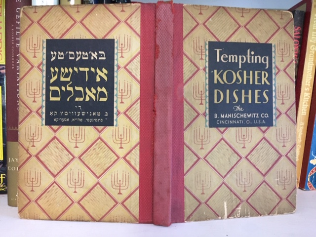 I, too, collect cookbooks. My Jewish cookbooks tend to reflect Sephardic cooking, the foods of the Mediterranean. I do have a few historic books which I enjoy using. And I found this Manischewitz English/Yiddish cookbook while helping clean out a neighbor’s home.