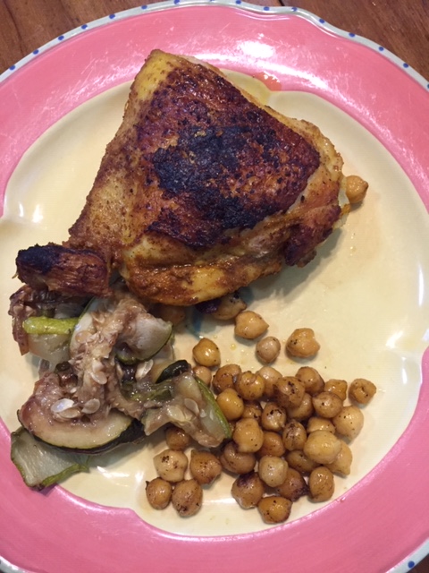 The second chicken dish we’ve enjoyed several times of late is Turmeric Chicken with Crispy Chickpeas, from the Food52 website – https://food52.com/recipes/83166-turmeric-chicken-recipe-with-crispy-chickpeas. I made the usual adjustments. In other words, regular sweet paprika in place of the smoky paprika. No Aleppo pepper or yogurt. It’s still delicious.