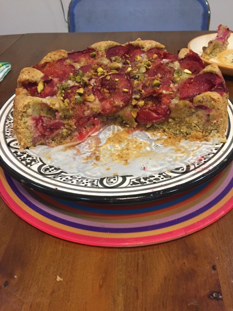 Plums. Such a luscious fruit. In a recent food distribution, included was a bag of lovely plums among the variety of salads. This time, I went to my good friend Google to find a cake, on The Brick Kitchen (https://www.thebrickkitchen.com/2017/02/plum-pistachio-lemon-cake/). Two things writing this blog has done is make me fluent in “Google” and introduce me to many, many other interesting blogs written by others all over the world.