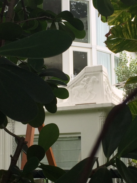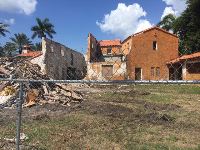 Another loss that I have been feeling long before COVID-19 put our lives into suspended animation is the loss of our community’s built heritage. I’ve written about the change in our architectural landscape in past posts (see June 2 & 15 posts). In the earlier epistle, I introduced what I call the Eddie Arcaro house because of the delightful horse and rider bas relief. After some on-line research, I learned that this lovely two-story Mediterranean Revival house was built in 1926, in the early days of our community.