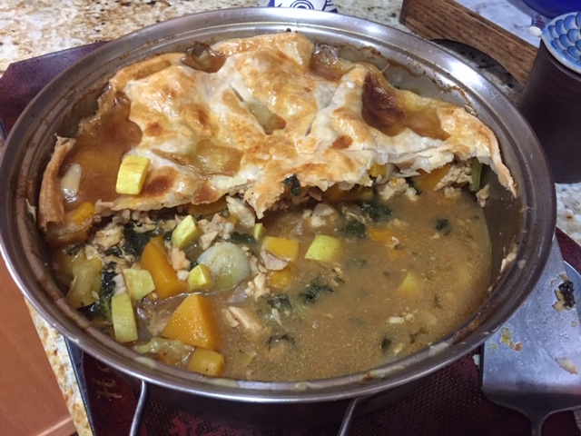 Skillet Chicken Pot Pie. Keep your skillet out, the next butternut squash dish I prepared uses it from start to finish. A similar recipe appeared in a recent publication: https://forward.com/food/457380/for-shabbat-have-some-chicken-pot-pie-with-your-pre-election-anxiety/?utm_source=PostUp&utm_medium=email&utm_campaign=Daily%20Newsletter%20USE%20THIS%20ONE&utm_maildate=10/30/2020).