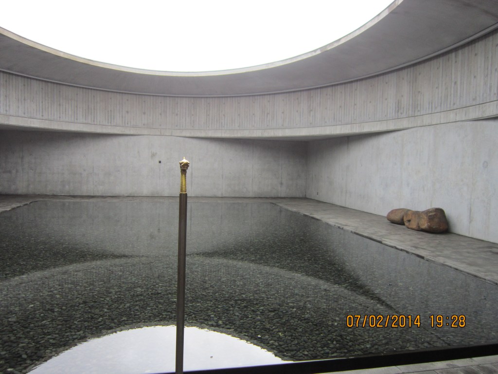 Our visit to the museum was self-guided; we walked from building to building through intermittent drizzle. Now, visitors take guided tours. First was the Water Museum – a space where the movement of nature is felt as the water’s reflection changes according to the movement of the sun.