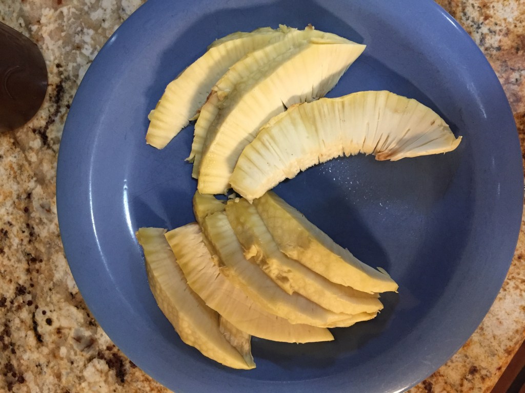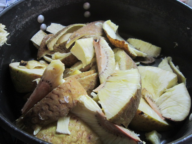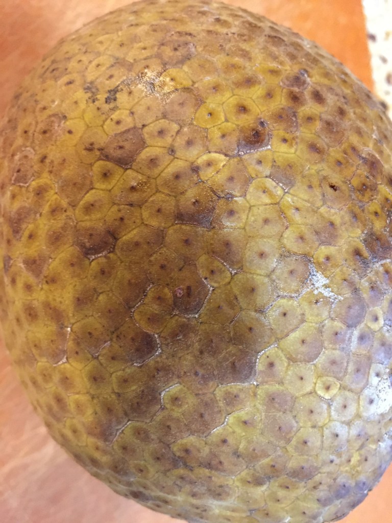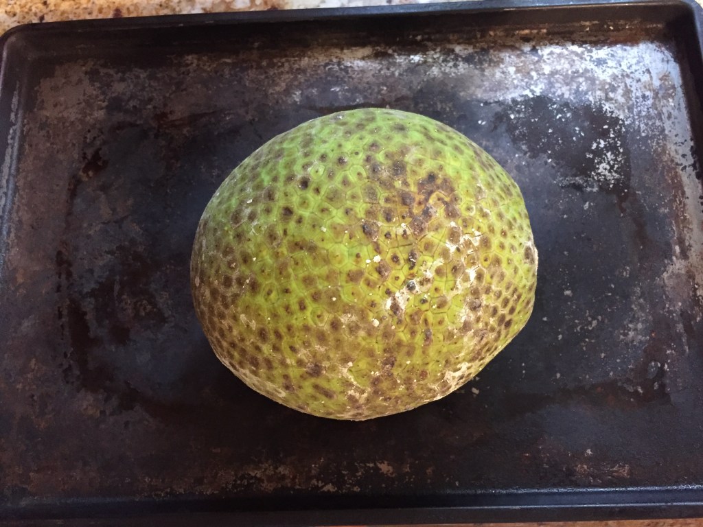 I learned to cook and eat breadfruit during my Peace Corps days in Jamaica. I loved seeing the large, dark green, spreading leaves of the trees in yards around town. Even better was freshly baked and fried slices of this delicacy, unknown in the northern climes where I grew up.