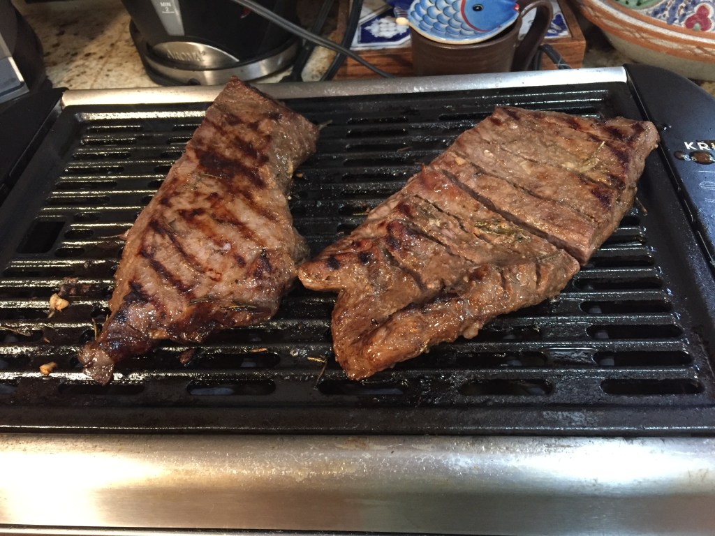 Flank steak excavated from the freezer called for the table-top electric grill.