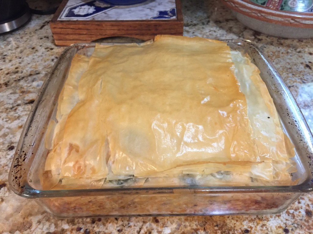 Both Constant Companion and I enjoyed this dish from the distant past. We’ll try it again sometime in the future, when the ingredients align. Spoiler alert: The pantry was not totally aligned, I had to buy the filo, and now I have some in the freezer for the next time.