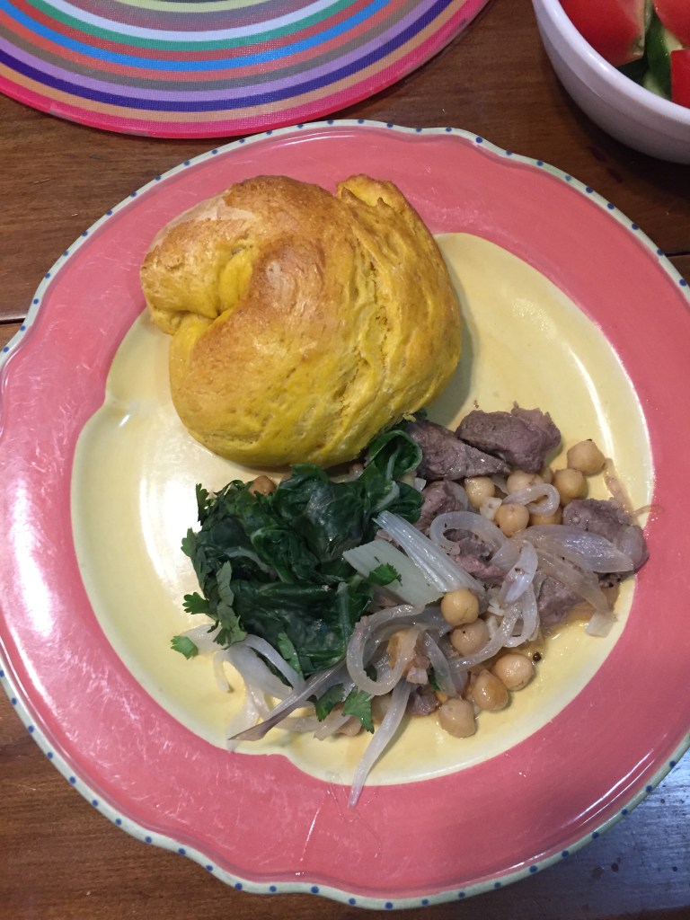 I’ll not provide the recipes here; they were more complex and time consuming than my normal cooking routine. A few can be found on-line. Instead, I’ll offer some reflections. The source of the Swiss chard stew with meat and chickpeas was at least one 1590 Inquisition trial record and also came from one of the author’s grandmothers.