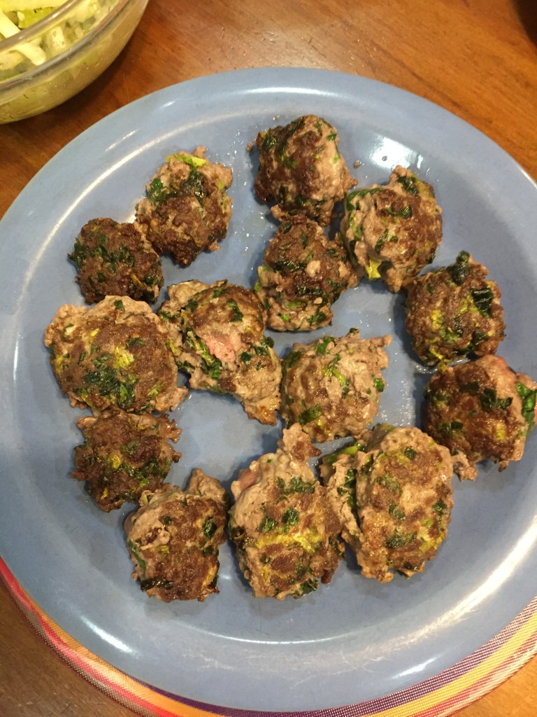 Some months ago, I watched Jawhara Piñer demonstrate the dish mysteriously named Meatballs Cursed by Jews in an early Arabic cookbook. In the book, she promises a yield of twenty-five walnut-sized meatballs. I eked out fourteen following the instructions.