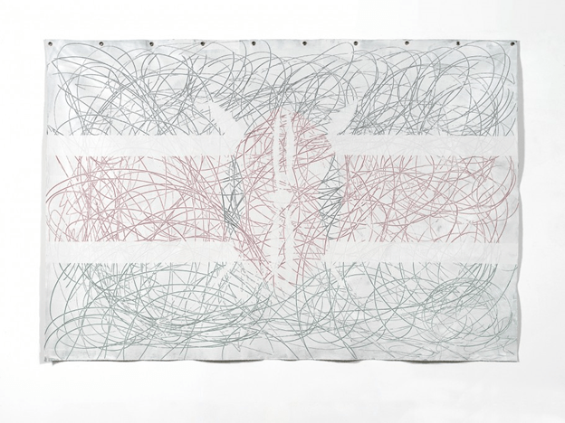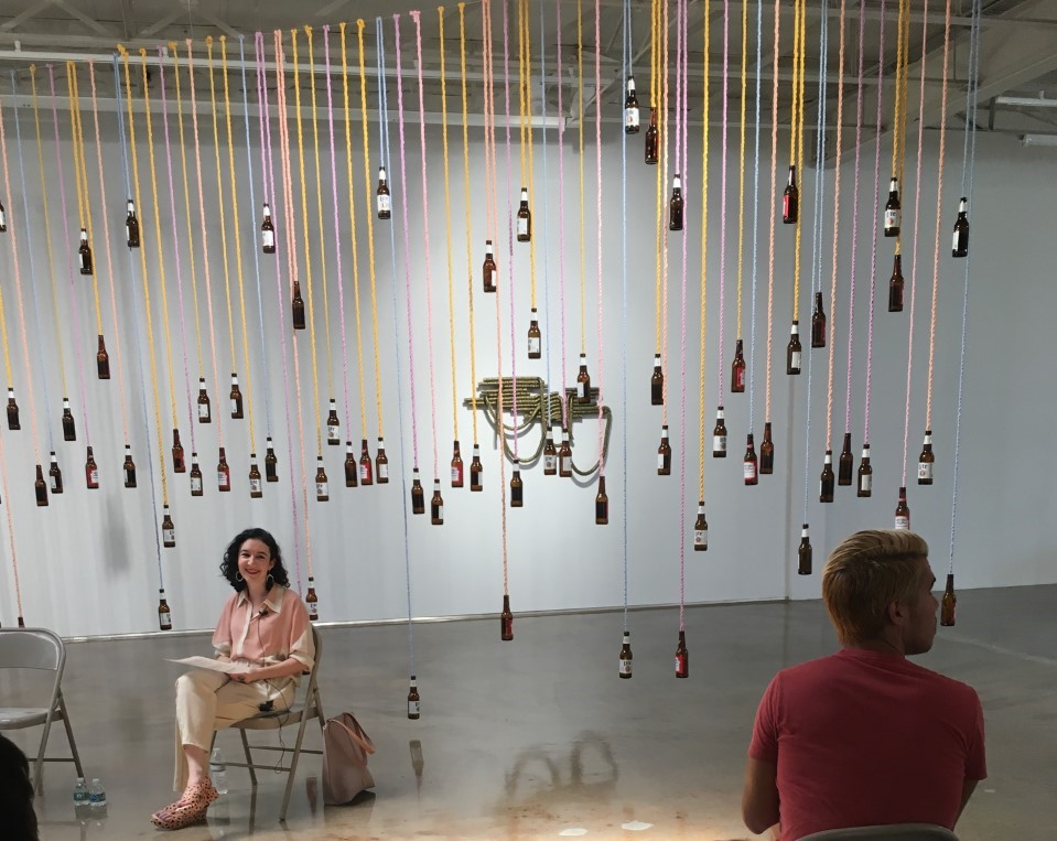More examples of the liberal use of empty, yet heavily weighted buzzwords to characterize artwork in the exhibit follow. Angela Ferreira, according to brief the curatorial text, “addresses the perpetual impact of colonialism and postcolonialism on contemporary society …” through her video artwork. Nigerian artist DaaPo Reo “weaves sociocultural, economic, and political commentaries into his mixed media flag textile installations.” A curtain of beer bottles strung on rope by South African artist Lungiswa Gqunta “engage[d] in the complexities of the South African postcolonial cultural and political landscape.”