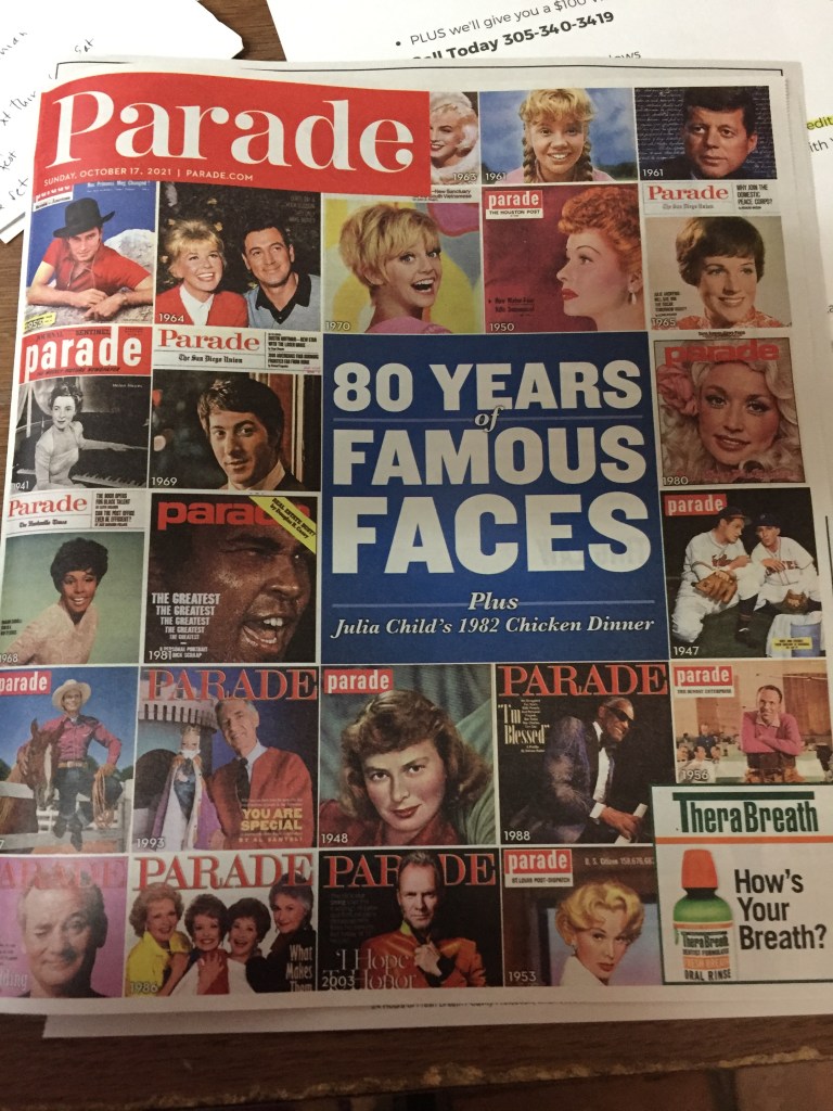 *Parade Magazine has come as a weekly insert in our Sunday newspaper for as long as I can remember.