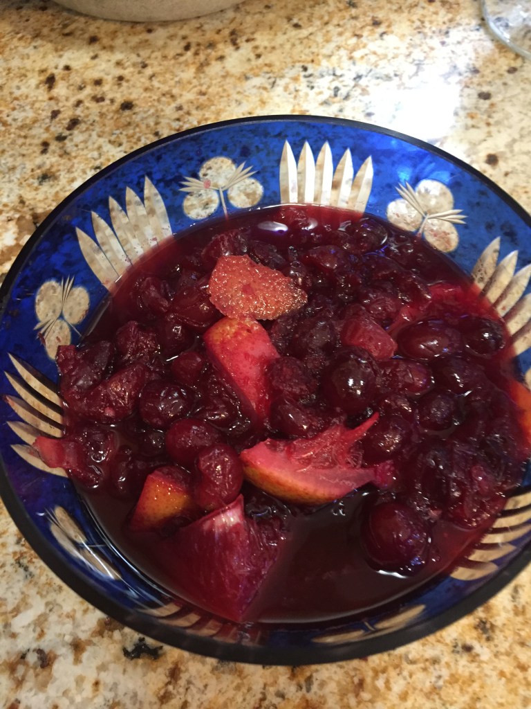 Some years ago I cut out a recipe for cranberry sauce and safely filed it in one of the binders with other cut-out magazine recipes. A similar recipe popped up on my desktop recently and I decided to give it a try. My usual cranberry sauce is the one recommended on the bag of cranberries – cranberries, orange, and sugar. This recipe is similar and so much for tasty.