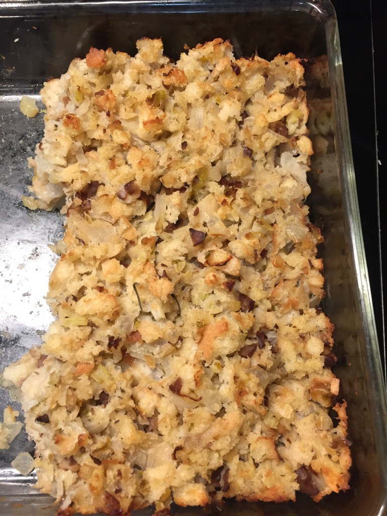 Wednesday morning started with making cranberry sauce (the start) and pecan pie (the finish). I also made a hummus (the in-between) to take to our neighbor’s for pre-dinner cocktails. Thursday mid-morning, Daughter made the stuffing and I started the turkey. I’m from the school that it cannot be Thanksgiving if your house is not filled with the aromas of turkey et al.