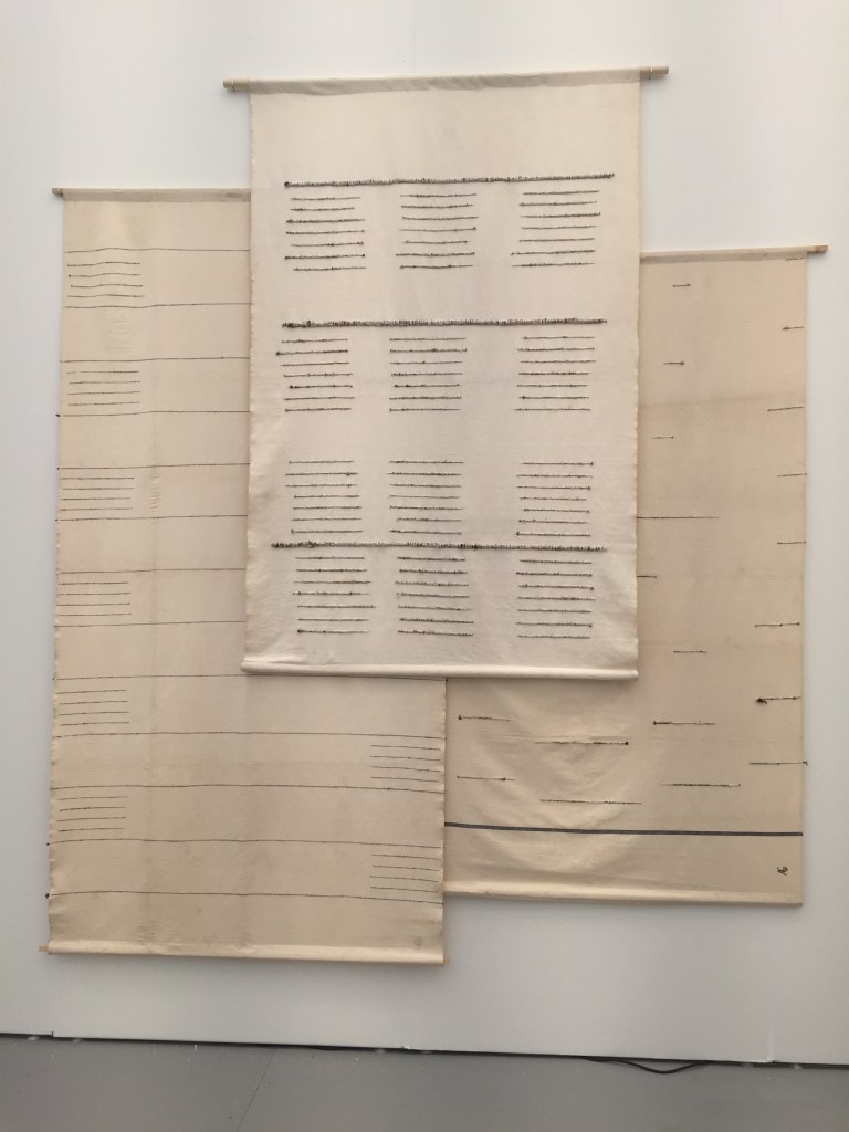 The first artworks we saw upon entering were three large textiles by Alvaro Gomez from the 1970s and 1980s. They took me back to a long ago previous life … Textiles have long been a part and love of my life. I learned to weave as part of an undergraduate degree of African Studies and Textiles under the guidance of Janet Taylor at Kent State University. Some years later, in my second museum job in Cleveland, I met Sara Mattsson Anliot, an amazing Swedish weaver who brought her craft to the US.