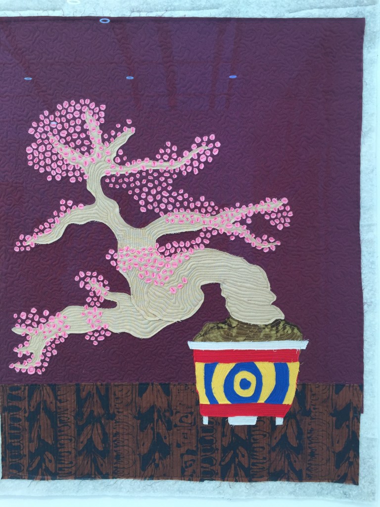 The intricate workmanship and sheer beauty of the quilts by Michael C. Thorpe (http://michaelcthorpe.com/) stood out loud and clear. I was drawn in by the pictures he constructed out of pieces of fabric and the intricate patterns drawn by his stitchwork. The gracefulness of the Asian imagery of these pieces also spoke to me.