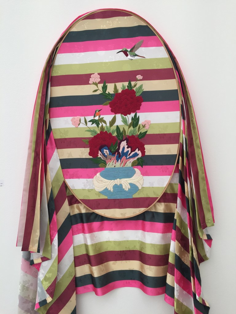 From weaving to quilting to embroidery, so many techniques represented at the fair. The Asian imagery of Dana Weiser drew me in (https://artandcakela.com/2018/01/25/studio-visit-with-dana-weiser-the-accidental-tourist/), Much of her imagery is drawn from Korea, a country I’ve been fortunate to get to know in the recent past.