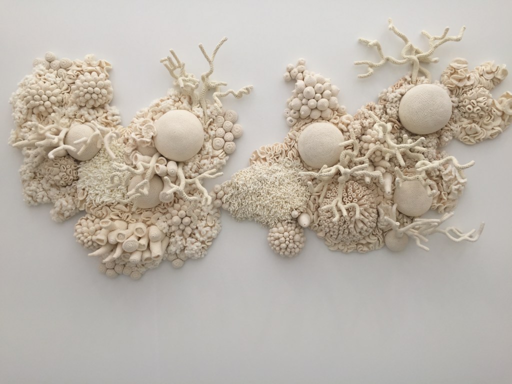 Sharon Kerry-Harlan (https://www.sharonkerryharlan.com/home) vividly brings to life the coral that surrounds our real environment. On the other hand, does the white piece represent the bleaching faced by too much coral around the world?