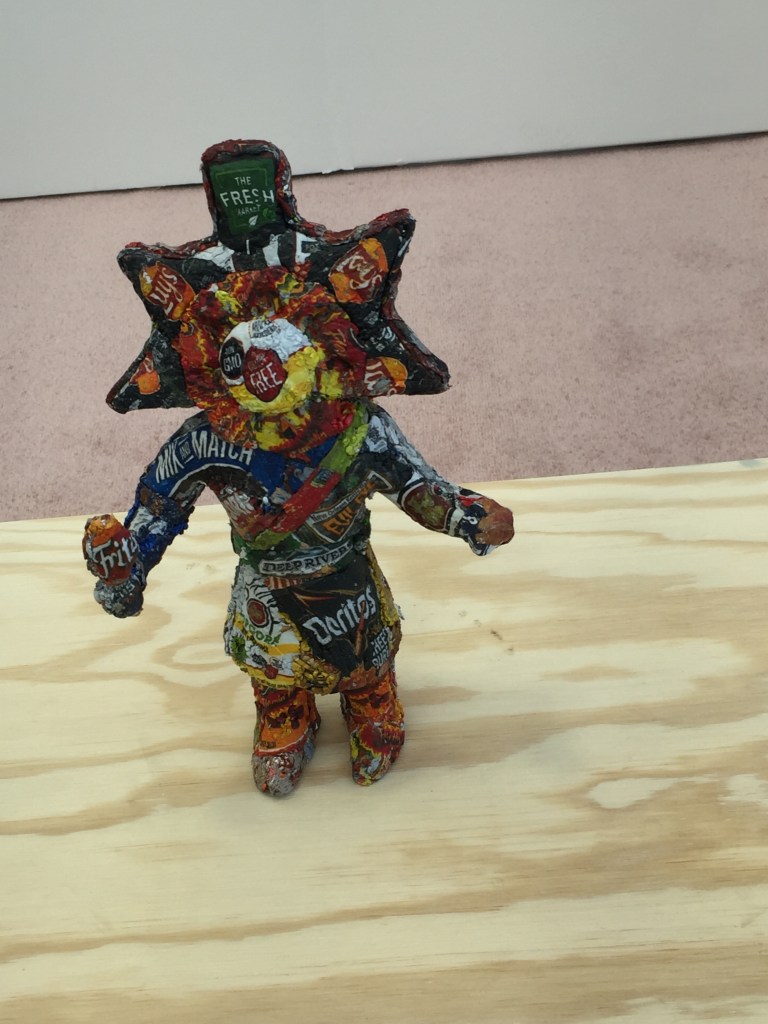 Two small figures from Eden Airlines, a gallery in Richmond, caught my eye. As the gallerists stood chatting nearby, the gallery assistant told me briefly that they were South African (I think). I was so taken aback because they are clearly reinterpretations of kachinas. No information about the artist; a quick internet search revealed they are the Great Value works by Dylan Languell (https://www.dylanlanguell.com/blog), an artist living and working in Richmond.