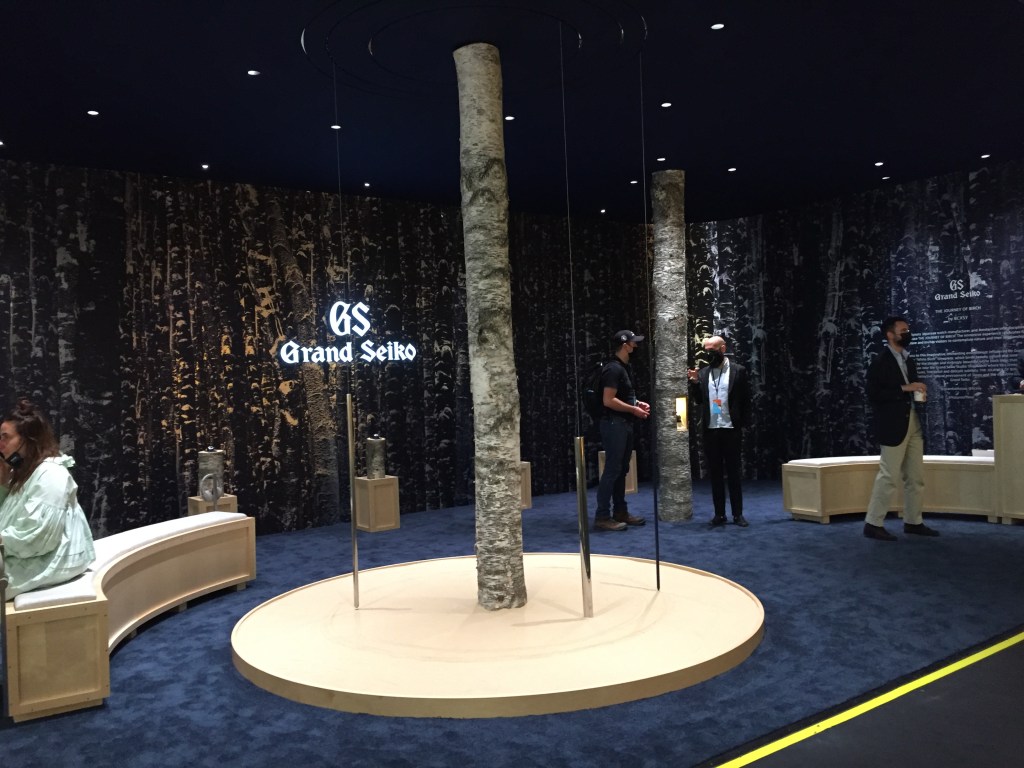 The recreated Grand Seiko birch forest environment (https://grandseikogs9club.com/chronicle-9/design-miami-journey-of-birch/) and working sculptural clock designed by Amsterdam design studio BCXSY (https://www.bcxsy.com/).