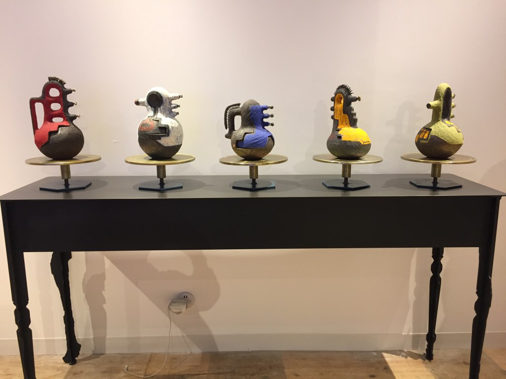 “Ceremony” by Jean Jacques Gallery and Austin-based sculptor Nick Weddell brings together their unique ceramics with tapestries and a geodesic dome to recreate an Ayahuasca ceremony from another planet (https://www.theartnewspaper.com/2021/12/01/in-pictures-visitors-find-a-kinder-more-humane-view-of-the-world-at-design-miami).