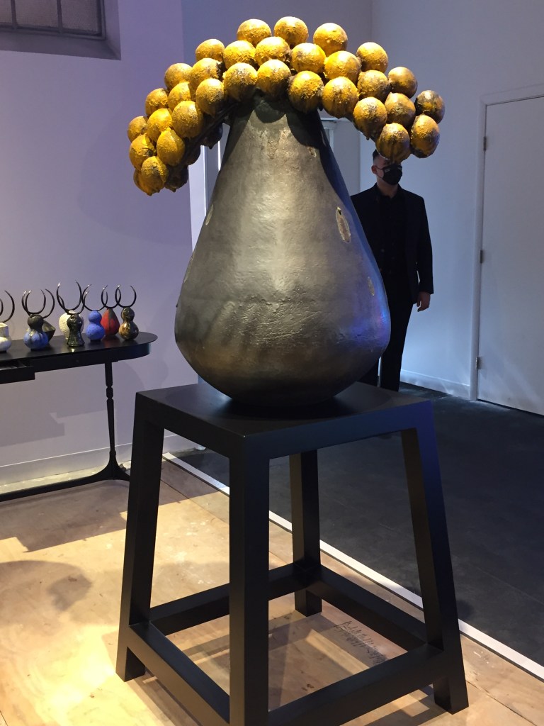 The presentation by Southern Guild from South Africa (https://southernguild.co.za/wp-content/uploads/2021/11/DesignMiami2021_SouthernGuild_Catalogue_29.11.21.pdf), was awarded Best of Show. Featured are ceramics by four of South Africa’s most accomplished artists working in clay. The pieces commissioned specifically for this year’s show ranged from smaller studies to monumental pieces.