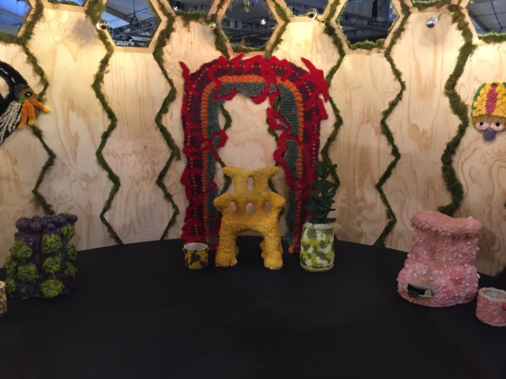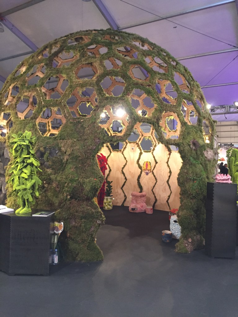 In an equally engaging environment visitors are welcomed into a moss covered dome set in an environment decorated with childlike rugs and Simonsson’s Moss People (https://thedecoratingdiva.com/kim-simonsson-ceramic-sculptor-design-miami/).
