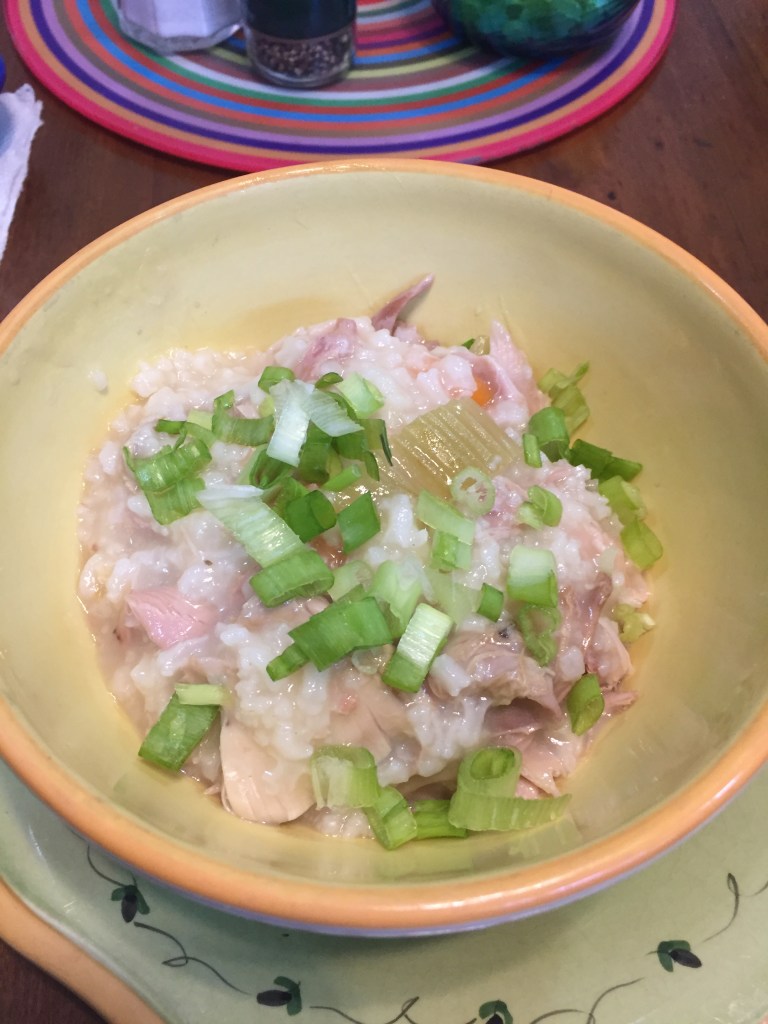 Then Thanksgiving rolled around and our neighbor invited us! It’s a long weekend and I went ahead and cooked, too (see Nov. 27, 2021 post). Our turkey carcass made its way into a congee, its usual fate these days (for recipe, see July 31, 2020).