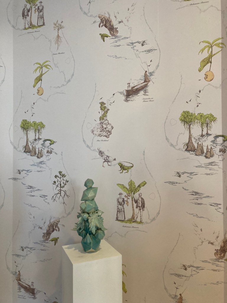 A multi-artist exhibit featuring residents of the Bakehouse, Parrots in the Kiln, included this public art wall paper by Christina Petterson.