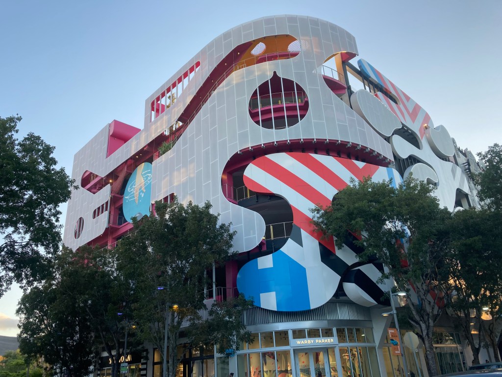 Constant Companion braved the post-ballet traffic to pick me up so we could join a pre-Valentine’s Day art tour of the Design District. We always enjoy learning about the public art in this area during the annual Art Week (see Nov. 30, 2021 post). This deep dive introduced us to some additional artwork from the perspective of a guide. Here’s some of what we enjoyed …