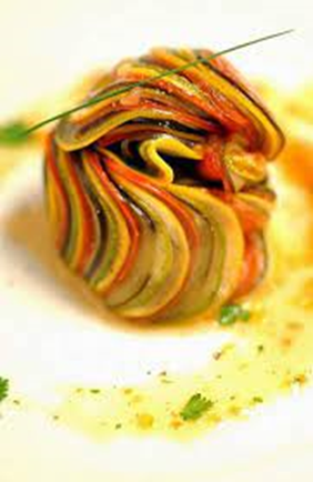 Ratatouille is a dish I’ve long enjoyed when I had zucchini, summer squash, eggplant, carrots, onions, sometimes, celery cooked in a rich tomato sauce. My usual ratatouille is an “easy to prepare” stew of chopped up vegetables that calls for little or no attention.